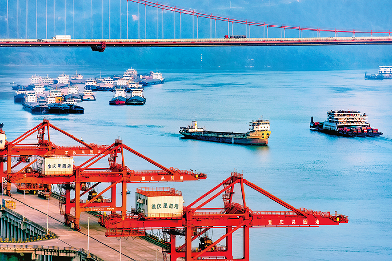 圖為我國西部唯一港口型國家物流樞紐重慶兩江新區(qū)果園港。在這里,長江黃金水道、中歐班列、西部陸海新通道實現了無縫銜接。 重慶兩江新區(qū)融媒體中心供圖 陳力行/攝
