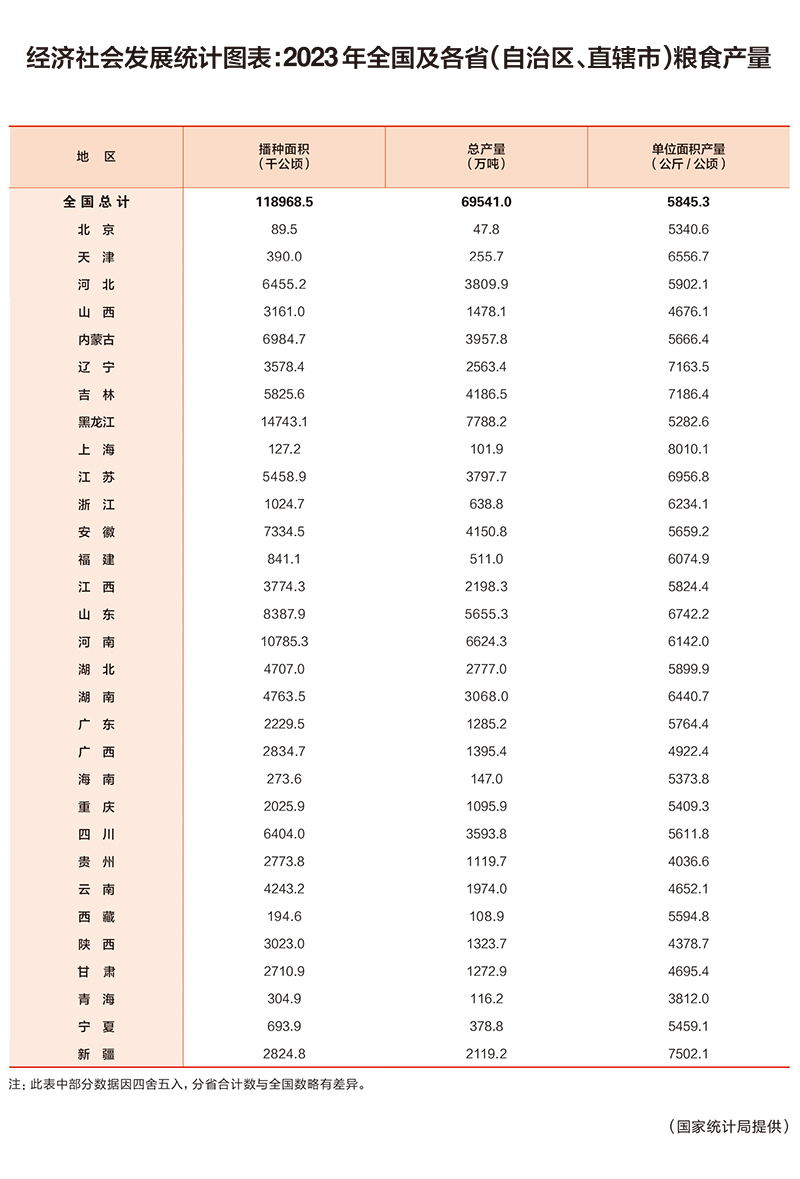 經(jīng)濟(jì)社會(huì)發(fā)展統(tǒng)計(jì)圖表:2023年全國(guó)及各?。ㄗ灾螀^(qū)、直轄市)糧食產(chǎn)量