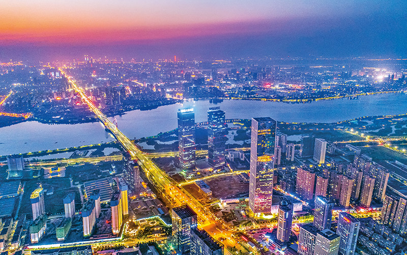 南昌國家高新技術產業(yè)開發(fā)區(qū)是江西省首個地區(qū)生產總值突破1000億元的開發(fā)區(qū),在電子信息、航空制造、數字經濟、新材料、醫(yī)藥健康等領域積累了一批特色產業(yè)基地和知名企業(yè)。圖為夜幕下的南昌高新區(qū)燈火璀璨。 南昌高新區(qū)供圖