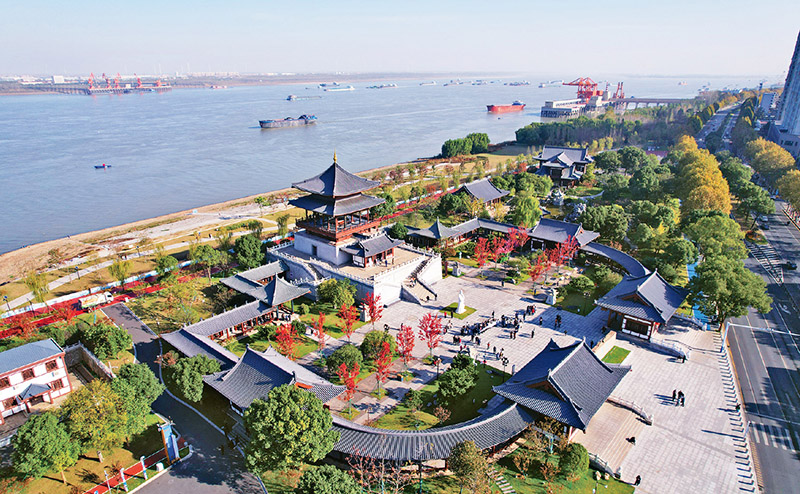 近年來,江西省九江市堅持生態(tài)優(yōu)先、綠色發(fā)展,建設長江國家文化公園九江城區(qū)段,彰顯長江文化九江特色。圖為該地文化地標琵琶亭內,不少游客在觀賞長江之美。 人民圖片 張馳/攝