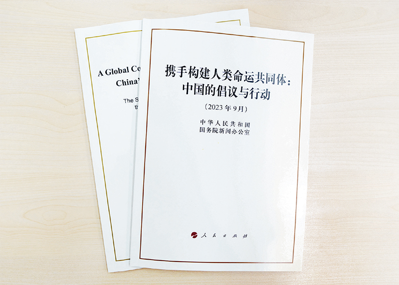 2023年9月26日,為全面介紹構(gòu)建人類命運共同體的思想內(nèi)涵和生動實踐,增進國際社會了解和理解,凝聚廣泛共識,更好與各國攜手構(gòu)建人類命運共同體,國務(wù)院新聞辦公室發(fā)布《攜手構(gòu)建人類命運共同體:中國的倡議與行動》白皮書(中、英文版)。 新華社記者 才揚/攝
