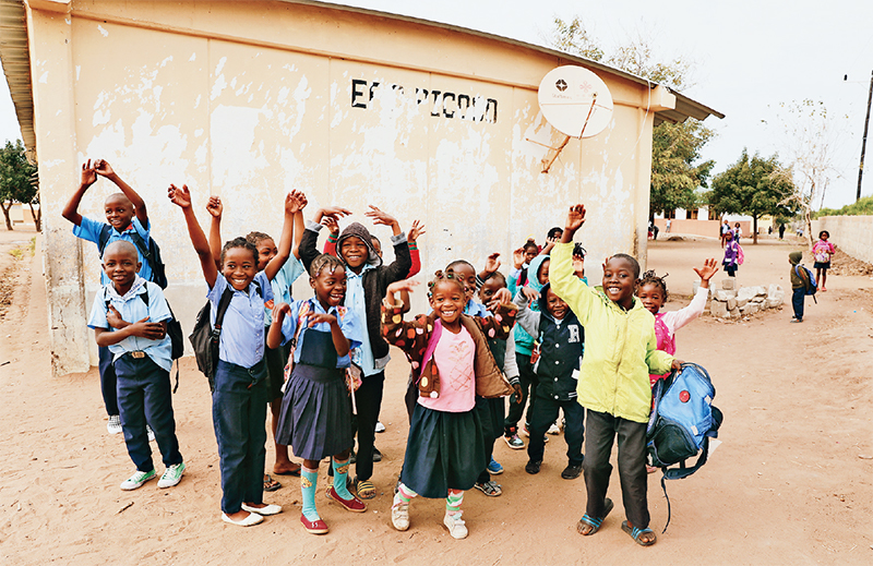 中國援非“萬村通”項目旨在為上萬個偏遠(yuǎn)村莊接入衛(wèi)星電視信號,助力非洲民眾聯(lián)通世界,是中非合作的重要舉措和共建“一帶一路”民心相通的重要成果。該項目2018年在莫桑比克啟動,為該國1000個村落、2萬戶家庭和3000個公共場所安裝衛(wèi)星電視設(shè)備,提供電視信號和節(jié)目,覆蓋農(nóng)村人口達(dá)250萬。圖為2023年7月25日,莫桑比克馬普托省皮科科村學(xué)校的孩子們,站在裝有中國援助的衛(wèi)星電視接收天線的房屋前。 新華社記者 董江輝/攝