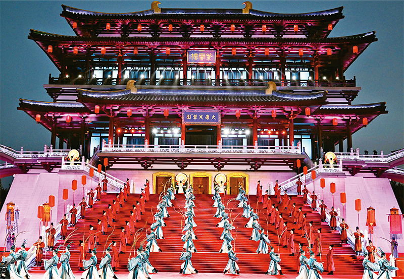藝術(shù)無國界,文化共鳴成為拉近人民心靈的紐帶。共享文化之美,中外文化和諧交融,為世界和平與發(fā)展注入動力。圖為2023年5月18日,在陜西省西安市大唐芙蓉園拍攝的中國—中亞峰會歡迎儀式。 新華社記者 申宏/攝