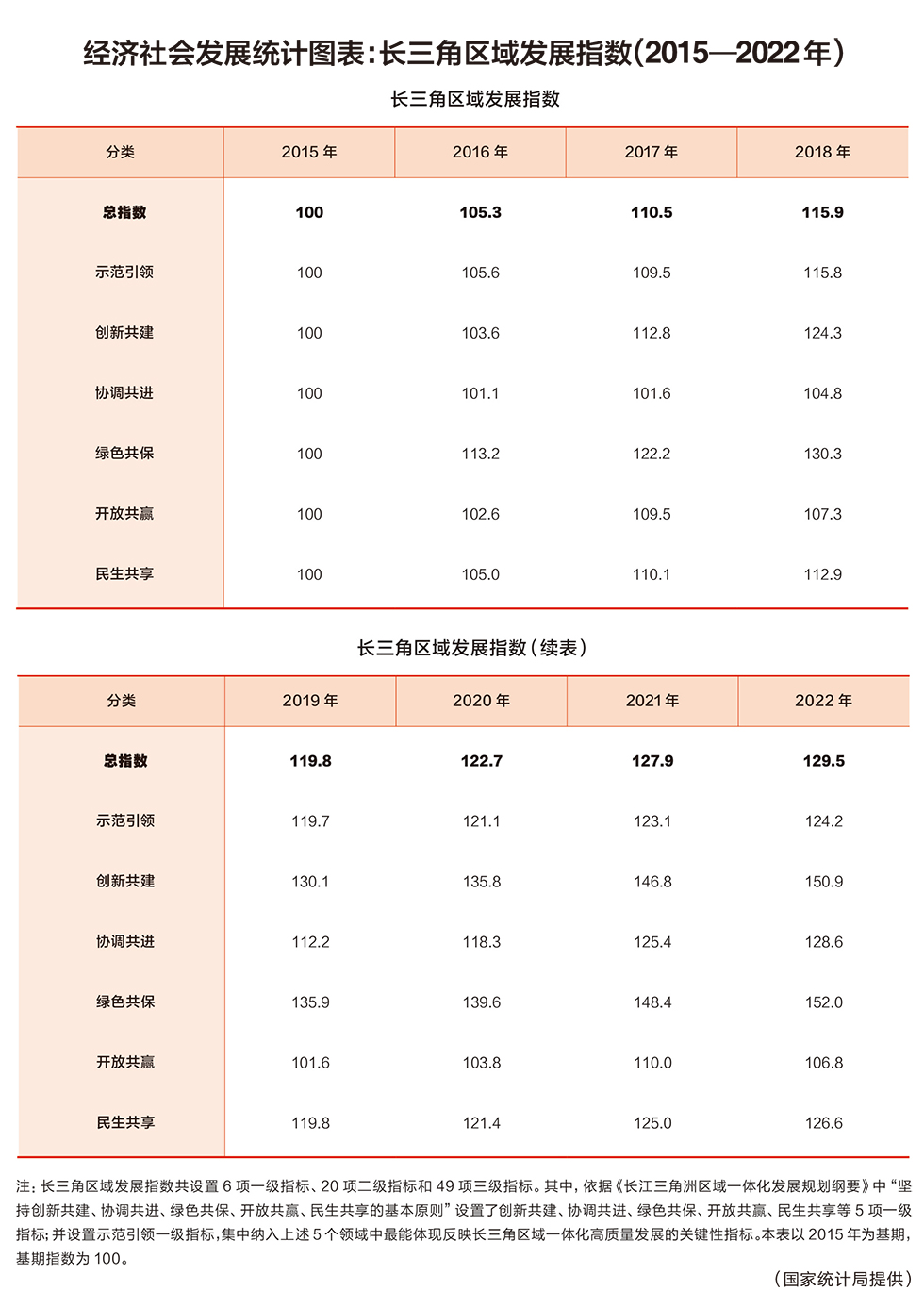 經(jīng)濟(jì)社會發(fā)展統(tǒng)計(jì)圖表:長三角區(qū)域發(fā)展指數(shù)(2015—2022年)