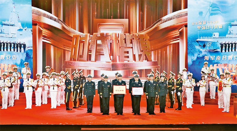 圖為海軍南昌艦黨委“時代楷?!狈Q號發(fā)布儀式現(xiàn)場。 蒲海洋/攝