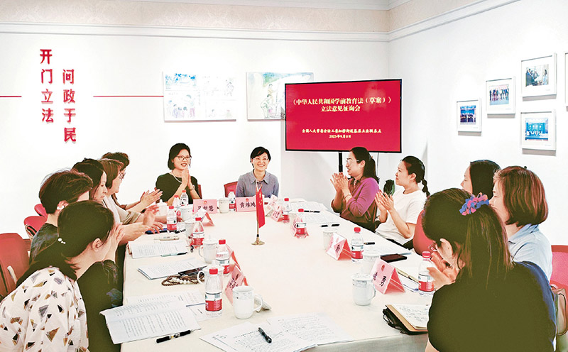 2023年9月8日,學(xué)前教育法(草案)立法意見征詢會在上海市長寧區(qū)虹橋街道基層立法聯(lián)系點舉行。 上海市長寧區(qū)虹橋街道基層立法聯(lián)系點供圖