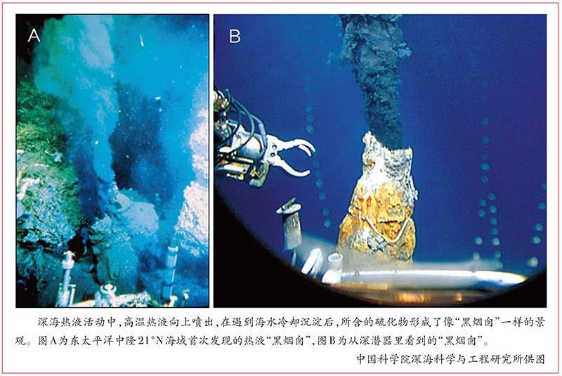 深海底部的雙向運(yùn)動(dòng)。深海熱液是20世紀(jì)海洋科學(xué)的重大發(fā)現(xiàn)之一,包括高溫?zé)嵋汉偷蜏責(zé)嵋骸?979年,美國的載人深潛器“阿爾文”號在東太平洋進(jìn)行深潛考察時(shí),發(fā)現(xiàn)海底有2米高的“黑煙囪”向上噴出滾滾濃煙。原來,這是滲入地殼的海水與上升的巖漿接觸后,形成的富含金屬元素的熱液,即深海熱液。350℃的高溫?zé)嵋合蛏蠂姵?,在遇到海水冷卻沉淀后,所含的硫化物形成了像“黑煙囪”一樣的景觀。人們由此推測,深海熱液是巖漿活動(dòng)的副產(chǎn)品。此后,又經(jīng)過30年的探測,全球累計(jì)發(fā)現(xiàn)500多處活動(dòng)的熱液口,其中,一半分布在板塊擴(kuò)張的大洋中脊,一半分布在板塊俯沖的火山弧一帶。除了巖漿活動(dòng),上地幔的橄欖巖在洋中脊或者俯沖帶出露,與海水發(fā)生化學(xué)反應(yīng),也能產(chǎn)生熱量而引起熱液活動(dòng)。不過,這種熱液溫度只有40℃到90℃,被稱為低溫?zé)嵋骸?000年,“阿爾文”號在大西洋中脊附近發(fā)現(xiàn)了方解石等構(gòu)成的“白煙囪”。“白煙囪”就是低溫?zé)嵋旱漠a(chǎn)物,可以形成10米到60米的尖塔。比深海熱液分布更廣的是冷泉,也就是天然氣水合物的甲烷泄出口。在深海海底高壓低溫的條件下,甲烷很容易被包在水冰分子里,形成天然氣水合物(可燃冰)。但是水合物在海底并不穩(wěn)定,溫度壓力稍有變化就會(huì)放出氣體,形成冷泉。熱液和冷泉從海底自下而上向海水輸送物質(zhì),海水自上而下向地殼滲透、海底板塊向下俯沖,在深海海底形成雙向運(yùn)動(dòng)的物質(zhì)和能量交換。