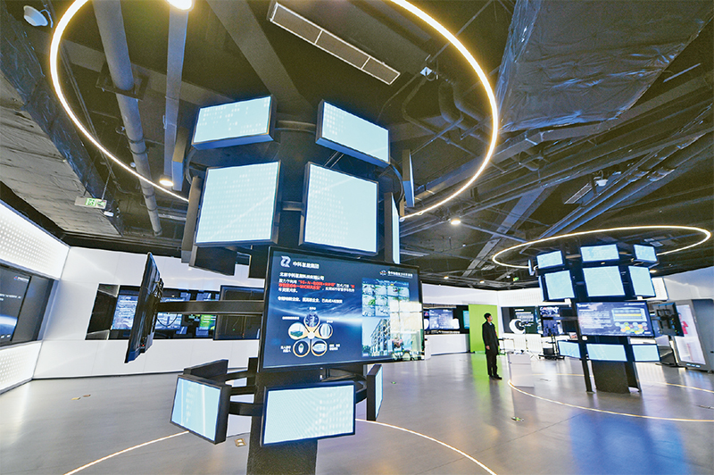 從北京大興國際機場向北進(jìn)入城區(qū),南中軸“大紅門”地區(qū)映入眼簾。這里曾聚集著幾十個服裝批發(fā)市場,如今已全部疏解“變身”科創(chuàng)中心,吸引了150多家科技企業(yè)落戶。圖為北京南中軸國際文化科技園數(shù)智創(chuàng)新中心展示廳。 新華社記者 鞠煥宗/攝