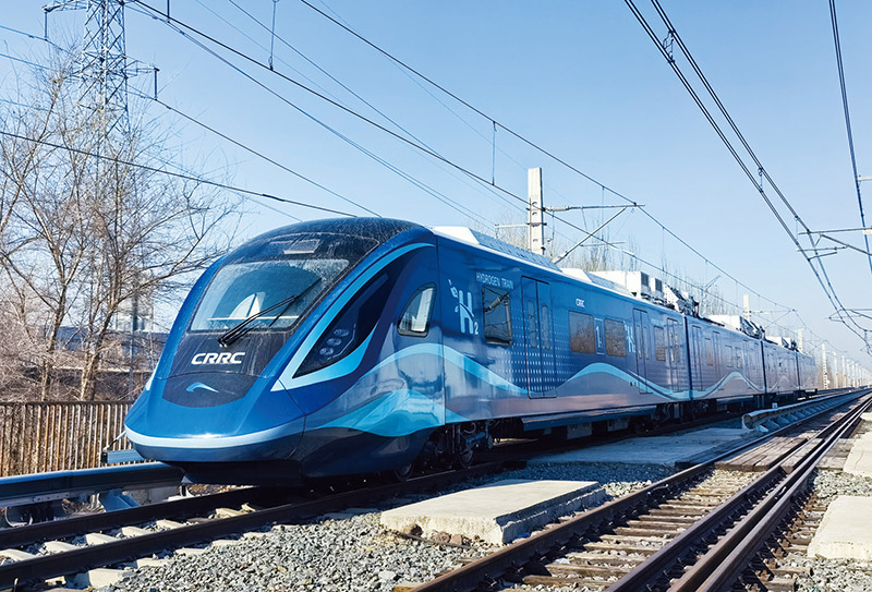 圖為2024年3月21日,我國首列氫能源市域列車在位于長春的中車長客試驗(yàn)線進(jìn)行運(yùn)行試驗(yàn),標(biāo)志著氫能在軌道交通領(lǐng)域應(yīng)用取得新突破。 新華社發(fā) 中車長客股份公司供圖