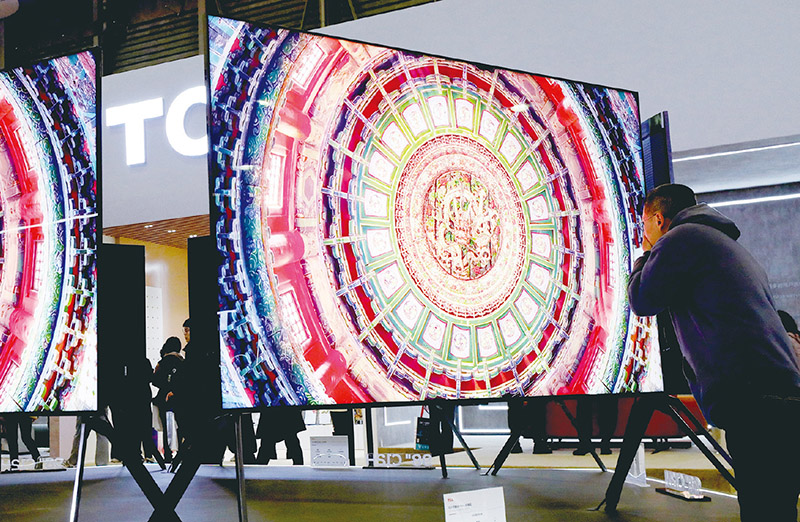 3月14日,2024年中國家電及消費(fèi)電子博覽會(huì)在上海新國際博覽中心開幕。全球家電及消費(fèi)電子領(lǐng)域頂流品牌在博覽會(huì)上齊聚一堂,集中展示各自最新的創(chuàng)新成果。圖為一名參觀者在一家公司展臺上觀察一款電視展品的屏幕。 新華社記者 方喆/攝