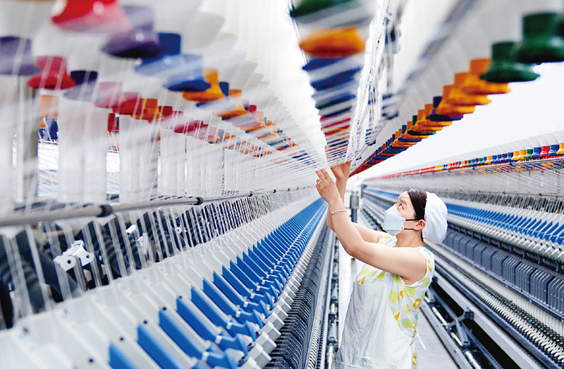 發(fā)展新質(zhì)生產(chǎn)力不是忽視、放棄傳統(tǒng)產(chǎn)業(yè),要用新技術(shù)改造提升傳統(tǒng)產(chǎn)業(yè),積極促進(jìn)產(chǎn)業(yè)高端化、智能化、綠色化。圖為2024年3月12日,在山東騰峰紡織科技有限公司,工作人員在智能化紡紗設(shè)備前忙碌。 新華社記者 郭緒雷/攝