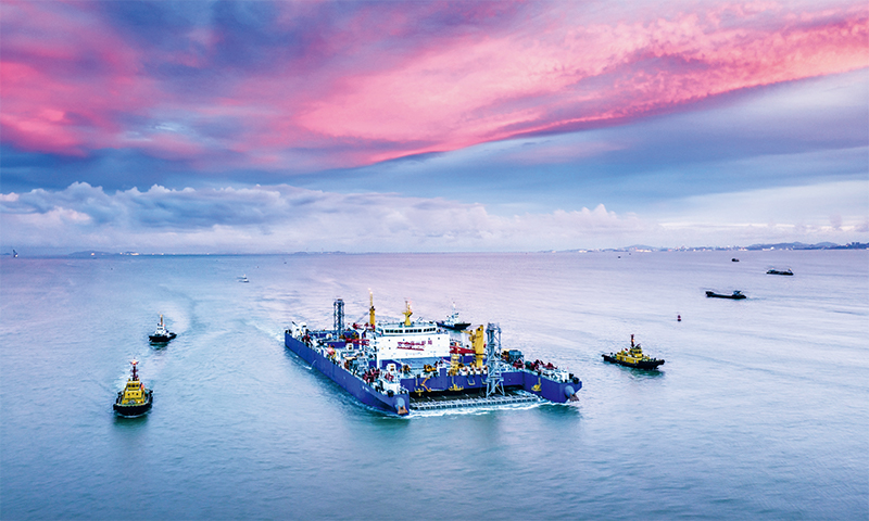 2023年6月11日,由中交一航局第二工程有限公司參與施工的國(guó)家重大工程深中通道海底沉管隧道最終接頭合龍。圖為2023年6月8日,“一航津安1”號(hào)沉管運(yùn)輸安裝一體船將E23管節(jié)和最終接頭浮運(yùn)至安裝現(xiàn)場(chǎng)。 新華社發(fā)