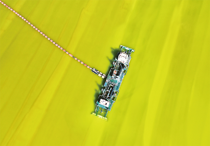 圖為2024年3月14日,青海鹽湖工業(yè)股份有限公司鉀肥分公司的采鹽船在鹽湖作業(yè)。 新華社記者 陳杰/攝
