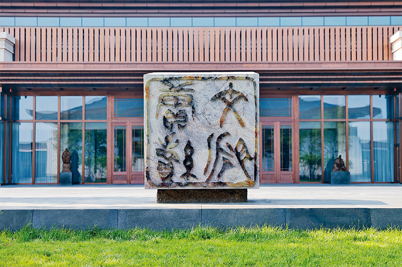 建設(shè)中國(guó)國(guó)家版本館,是以習(xí)近平同志為核心的黨中央作出的重大決策,是文明大國(guó)建設(shè)的基礎(chǔ)工程,是功在當(dāng)代、利在千秋的標(biāo)志性文化工程,充分體現(xiàn)了我們黨傳承發(fā)展中華文化的高度自覺(jué)、汲取歷史智慧更好走向未來(lái)的歷史主動(dòng)。圖為中國(guó)國(guó)家版本館中央總館一塊篆刻著“賡續(xù)文脈”的壽山石。 中新社記者 韓海丹/攝