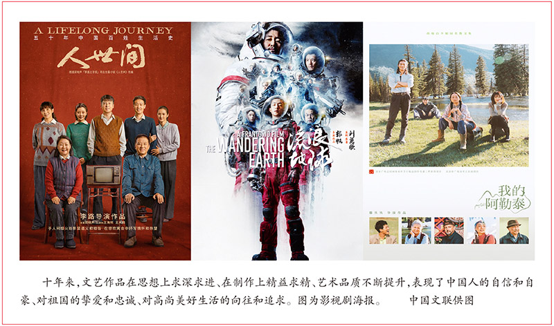 這是主旋律文藝作品在思想上求深求進(jìn)、在制作上精益求精、藝術(shù)品質(zhì)不斷提升、表現(xiàn)亮眼的十年。電視劇《覺(jué)醒年代》召喚追求真理、燃燒理想的澎湃歲月,《山海情》表現(xiàn)山海相連、守望相助的社會(huì)主義制度優(yōu)越性,《人世間》對(duì)工人階級(jí)精神風(fēng)貌進(jìn)行了史詩(shī)性的開掘,《大江大河》再現(xiàn)改革開放的壯闊歷史,《我的阿勒泰》呈現(xiàn)了綠草如茵、山河斑斕、人間有情、民族相親的北疆大地……在一部部文藝作品中,人們從生命的深處領(lǐng)會(huì)到把我們緊緊團(tuán)結(jié)和凝聚在一起的信念:作為中國(guó)人的自信和自豪,對(duì)祖國(guó)的摯愛(ài)和忠誠(chéng),對(duì)高尚美好生活的向往和追求,這是我們共同的家園,是我們共同奔赴的遠(yuǎn)方。樂(lè)舞、吟詠和歌唱,辭章和故事、圖像和影像,新時(shí)代的中國(guó)人從多姿多彩的文藝作品中分享共同的情感、共同的價(jià)值觀。培根鑄魂、啟智潤(rùn)心,弘揚(yáng)中華文明以詩(shī)教人、以文化人的傳統(tǒng),培育和倡導(dǎo)全體中國(guó)人民共同的價(jià)值追求和精神認(rèn)同。這正是新時(shí)代文藝根本的社會(huì)責(zé)任之所在。