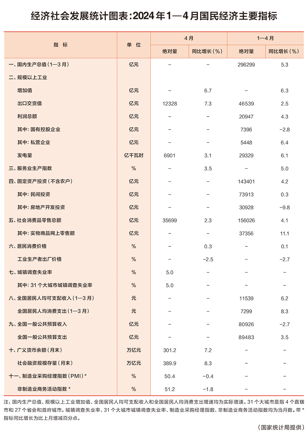 經(jīng)濟(jì)社會(huì)發(fā)展統(tǒng)計(jì)圖表:2024年1—4月國(guó)民經(jīng)濟(jì)主要指標(biāo)