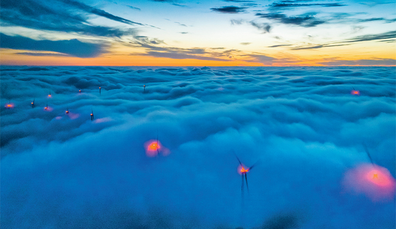 近年來,各地立足資源稟賦,加快清潔能源開發(fā)利用,推動發(fā)展方式綠色低碳轉(zhuǎn)型。圖為2023年2月23日晚,在湖北省宜昌市秭歸縣兩河口鎮(zhèn)云臺荒村拍攝的風(fēng)力發(fā)電機(jī)組(無人機(jī)照片)。 新華社發(fā) 鄭家裕/攝
