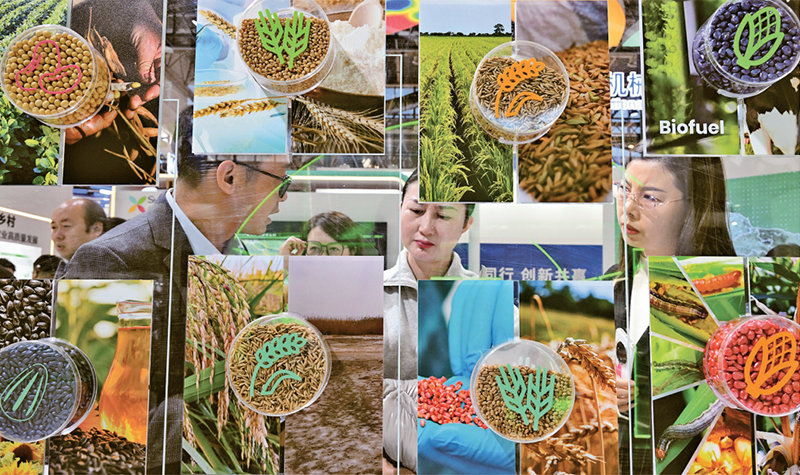 各地積極發(fā)展新質(zhì)生產(chǎn)力,為高質(zhì)量發(fā)展注入新動能、塑造新優(yōu)勢。圖為2023年11月30日,在首屆鏈博會綠色農(nóng)業(yè)鏈展區(qū),參觀者在展臺前了解種子研發(fā)情況。當(dāng)日,這里聚焦農(nóng)業(yè)產(chǎn)業(yè)鏈的核心環(huán)節(jié)、關(guān)鍵技術(shù)及產(chǎn)品,重點展示種子研發(fā)、智慧農(nóng)業(yè)應(yīng)用、現(xiàn)代智能化農(nóng)機(jī)設(shè)備和富有地域特色的農(nóng)業(yè)加工品,并配套展示農(nóng)業(yè)相關(guān)的金融、物流等服務(wù),為觀眾展現(xiàn)出一幅共創(chuàng)綠色農(nóng)業(yè)未來的新圖景。 新華社記者 李賀/攝