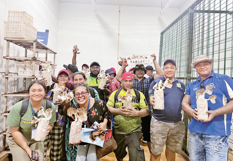 由斐濟農(nóng)業(yè)和水道部、中國—太平洋島國菌草技術(shù)示范中心等單位聯(lián)合主辦的為期7天的“太平洋島國菌草技術(shù)培訓(xùn)班”,吸引了來自巴布亞新幾內(nèi)亞、湯加、庫克群島、薩摩亞、瑙魯?shù)?1個太平洋國家的學(xué)員參加。自2014年菌草項目實施以來,中國在斐濟已培訓(xùn)了菌草人才2400多人,當(dāng)?shù)孛癖娎塾嫹N植菌草2000多公頃。圖為2024年2月28日,培訓(xùn)班學(xué)員手捧菌草菇合影。 新華社發(fā) 中國援斐濟菌草技術(shù)示范中心供圖