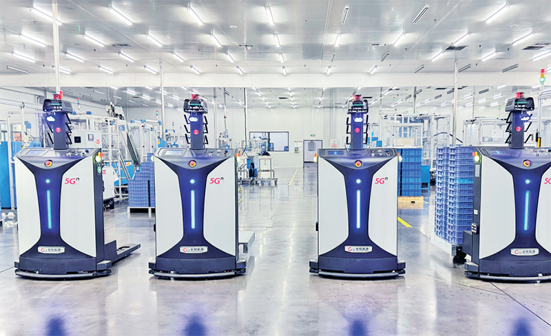 2023—2024年,中國聯(lián)通助力長虹新能源工廠引入“5G+”技術(shù),在車間成功實施了人工智能(AI)自動化質(zhì)檢和自動導(dǎo)引車(AGV)智能物流。圖為2024年4月18日拍攝的長虹新能源5G示范工廠內(nèi)AGV智能物流小車。 中國聯(lián)通供圖