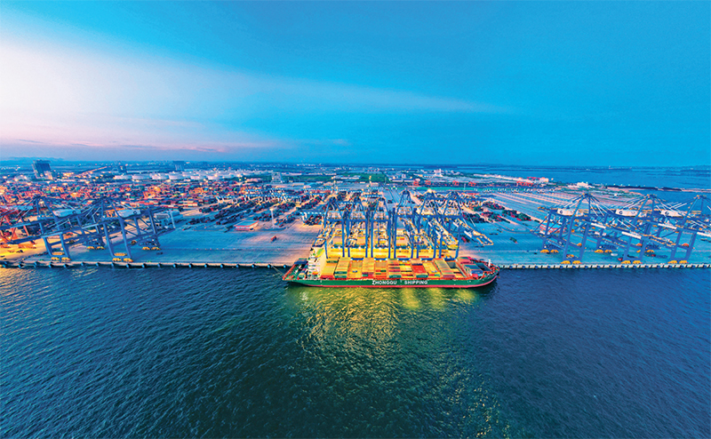 長(zhǎng)江入海口的長(zhǎng)興島上,坐落著全球最大的港口機(jī)械設(shè)備制造基地——振華重工長(zhǎng)興基地。初夏的長(zhǎng)興島,江水蕩漾,滿坡蒼翠。從海工碼頭一路望去,數(shù)十臺(tái)色彩各異的岸橋正舒展臂膀,一輛輛自動(dòng)引導(dǎo)車有條不紊地穿行,智能監(jiān)管、智能決策、自動(dòng)裝卸無縫連接。低成本、短周期、全智能、高效率、零排放、可復(fù)制的自動(dòng)化碼頭“中國(guó)方案”,已經(jīng)成為世界港口發(fā)展的標(biāo)桿。振華重工不斷推進(jìn)科技創(chuàng)新,高質(zhì)量發(fā)展的道路越走越寬,越走越自信。