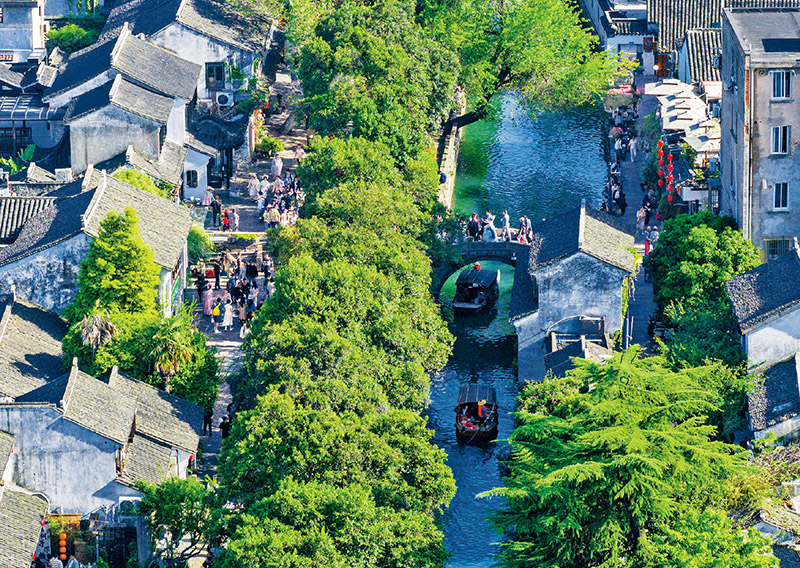 “君到姑蘇見,人家盡枕河。古宮閑地少,水港小橋多。夜市賣菱藕,春船載綺羅?!鼻в嗄昵埃拼娙硕跑鼹Q一首《送人游吳》,蘇州成為無數(shù)人魂?duì)繅?mèng)縈的詩畫水鄉(xiāng)。迎著淅淅小雨,記者踏進(jìn)蘇州平江歷史文化街區(qū)。徜徉街區(qū),城市肌理訴說歲月悠長;尋常巷陌,傳統(tǒng)現(xiàn)代實(shí)現(xiàn)交相輝映。