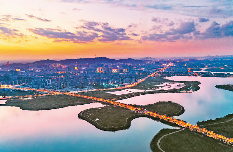 中國(guó)式現(xiàn)代化是人與自然和諧共生的現(xiàn)代化。近年來(lái),安徽淮北市有力提升采煤塌陷區(qū)改造工作,以生態(tài)修復(fù)為基礎(chǔ),實(shí)施南湖、乾隆湖、綠金湖、碳谷湖、古樂(lè)湖、朔西湖等六大塌陷湖泊治理工程,城市中心正逐步形成100多平方公里的中心湖帶和國(guó)家城市濕地公園,淮北人民“擁湖發(fā)展”的夢(mèng)想從藍(lán)圖變成現(xiàn)實(shí)。圖為昔日荒草廢灘的采煤沉陷地,變成了美麗的生態(tài)公園。 人民圖片 牛旭東/攝