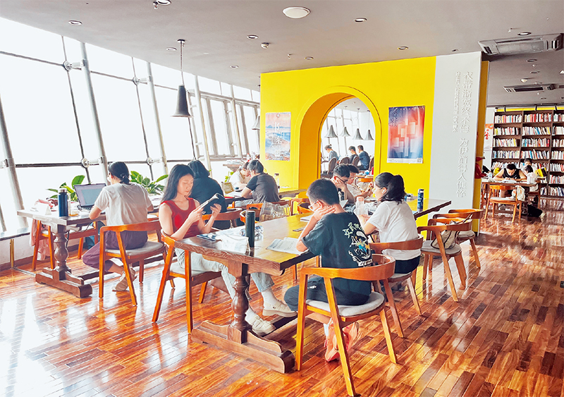 2020年7月,泉城書房高新區(qū)雨滴廣場分館建成開放。作為國內(nèi)首家“二安文化”主題書房,設有“二安文化”圖書專區(qū)、“在這里讀懂濟南”城市文創(chuàng)專區(qū)。圖為2024年7月9日,讀者在泉城書房高新區(qū)雨滴廣場分館閱讀。 濟南市委宣傳部供圖