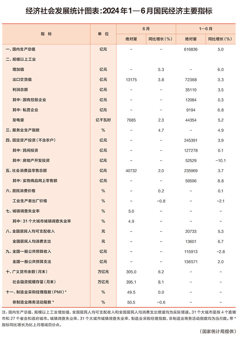 經(jīng)濟社會發(fā)展統(tǒng)計圖表:2024年1—6月國民經(jīng)濟主要指標