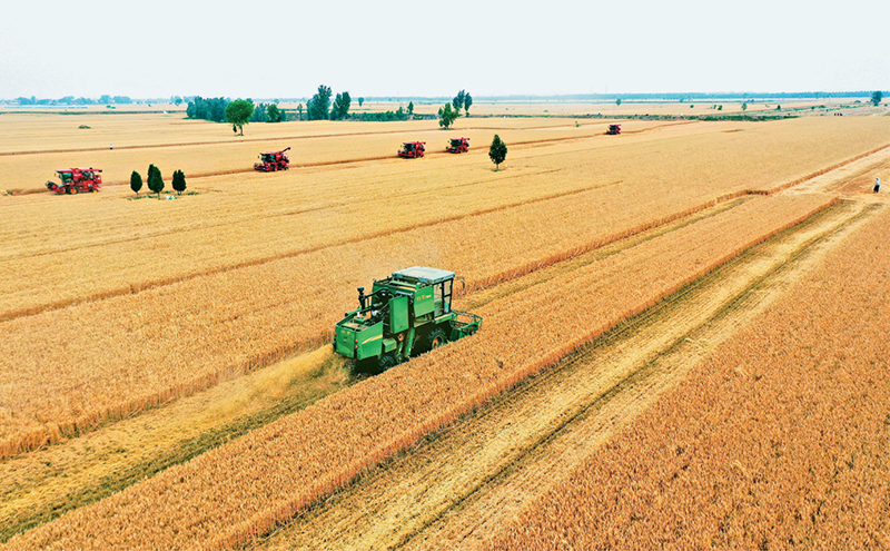 2024年全國夏糧總產(chǎn)量14978萬噸(2996億斤),比上年增加362.7萬噸(72.5億斤),增長2.5%,全國夏糧獲得豐收。圖為2024年6月4日,在河北省邢臺市南和區(qū)胡佃村,農(nóng)機(jī)手駕駛收割機(jī)開展小麥?zhǔn)崭钭鳂I(yè)。 新華社記者 王曉/攝
