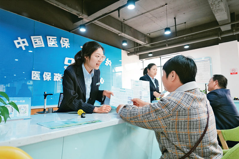 全面深化改革不斷回應(yīng)人民新期盼、滿足群眾新需求,人民利益、百姓福祉在國(guó)家發(fā)展中有了更多保障。截至2023年底,全國(guó)基本醫(yī)療保險(xiǎn)覆蓋13.3億人。圖為2023年11月1日,在重慶市北碚區(qū)歇馬街道醫(yī)保政務(wù)服務(wù)分中心,工作人員給居民講解醫(yī)保政策。 新華社發(fā) 秦廷富/攝