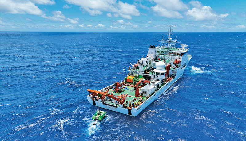 近期,我國深海礦產(chǎn)資源開發(fā)關(guān)鍵技術(shù)研究與裝備研制取得重大突破,由上海交通大學(xué)自主研制的深海重載作業(yè)采礦車工程樣機“開拓二號”成功完成海試。圖為2024年6月22日拍攝的“開拓二號”海試現(xiàn)場(無人機照片)。 新華社發(fā) 上海交通大學(xué)供圖