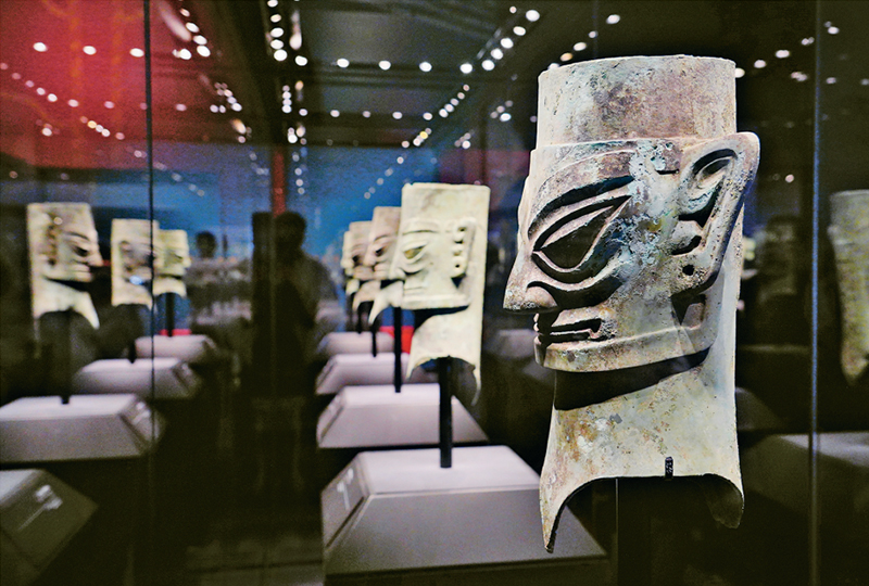 作為20世紀(jì)人類偉大的考古發(fā)現(xiàn),三星堆不僅出土了眾多珍貴的文物,更以其獨特的文化面貌和豐富的歷史內(nèi)涵,成為研究古代中華文明起源和發(fā)展的重要窗口。2024年6月27日,“探秘古蜀文明——三星堆與金沙”展在北京大運河博物館亮相。圖為辮發(fā)青銅人頭像。 人民圖片 宋家儒/攝