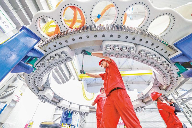 黨的二十屆三中全會強調(diào)要建設(shè)一流產(chǎn)業(yè)技術(shù)工人隊伍。產(chǎn)業(yè)工人是工人階級的主體力量,各級工會要更好團結(jié)動員廣大職工為進一步全面深化改革、推進中國式現(xiàn)代化作貢獻。圖為2024年7月23日,河北省隆化縣一家風(fēng)電設(shè)備企業(yè)的工人在車間工作。 新華社發(fā) 李秀清/攝