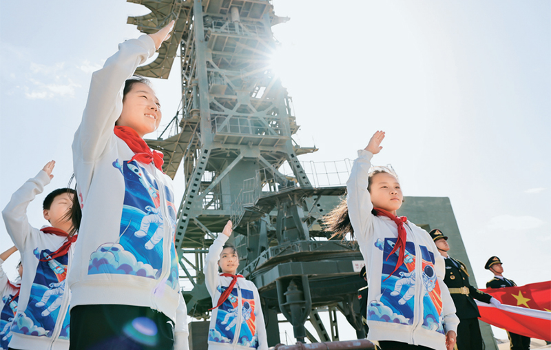 少先隊(duì)是建設(shè)社會(huì)主義和共產(chǎn)主義的預(yù)備隊(duì)。廣大少先隊(duì)員在少先隊(duì)這所大學(xué)校里立志向、修品行、練本領(lǐng),從小培養(yǎng)熱愛黨、熱愛祖國(guó)、熱愛人民的情懷,展現(xiàn)出朝氣蓬勃的精神風(fēng)貌。2024年4月24日是第九個(gè)“中國(guó)航天日”,“紅領(lǐng)巾愛祖國(guó)——我心中的五星紅旗”主題活動(dòng)在中國(guó)酒泉衛(wèi)星發(fā)射中心東方紅衛(wèi)星發(fā)射場(chǎng)舉行。圖為當(dāng)日,來(lái)自內(nèi)蒙古、甘肅、四川等地的少先隊(duì)員在中國(guó)酒泉衛(wèi)星發(fā)射中心東方紅衛(wèi)星發(fā)射塔架下敬隊(duì)禮。 新華社記者 金立旺/攝