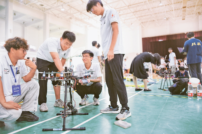 社會(huì)主義建設(shè)者和接班人必須全面發(fā)展。形式多樣的學(xué)術(shù)實(shí)踐競(jìng)賽,對(duì)培養(yǎng)大學(xué)生科學(xué)精神、全面發(fā)展發(fā)揮了積極作用。8月17日至18日,2024中國(guó)大學(xué)生飛行器設(shè)計(jì)創(chuàng)新大賽中部賽區(qū)選拔賽在天津舉行。圖為參賽選手調(diào)試飛行器。 中新社記者 佟郁/攝