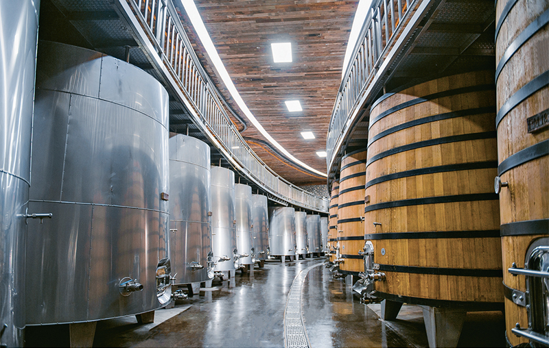 葡萄酒七分靠種,三分靠釀。一顆顆晶瑩剔透的葡萄,經(jīng)過采摘、破碎、發(fā)酵、陳釀、裝瓶、窖藏等一系列工序,方能成就馥郁芬芳的佳釀?!捌咸丫瓶梢源致苑譃樘鹁坪透删啤8善咸丫铺欠謽O低,能夠充分體現(xiàn)葡萄本身的風(fēng)味,也不易生長(zhǎng)細(xì)菌?!庇峄菝骱退墓び褌冇?984年釀出了寧夏第一瓶干型紅葡萄酒。那時(shí),在沒有發(fā)酵降溫和自來水給排水等設(shè)備、沒有輔料的艱苦條件下,他們反復(fù)實(shí)驗(yàn)、失敗后再戰(zhàn),終于通過手工破碎、發(fā)酵等方法,釀出了甘露瓊漿。“現(xiàn)在,賀蘭山東麓產(chǎn)區(qū)已經(jīng)建立了葡萄酒技術(shù)標(biāo)準(zhǔn)體系和48項(xiàng)技術(shù)標(biāo)準(zhǔn),近年來又有科研團(tuán)隊(duì)實(shí)現(xiàn)了本土葡萄酒酵母研發(fā)‘從0到1’的突破。”俞惠明說,“寧夏葡萄酒產(chǎn)業(yè)正在實(shí)現(xiàn)技術(shù)引領(lǐng)高質(zhì)量發(fā)展?!?/p>