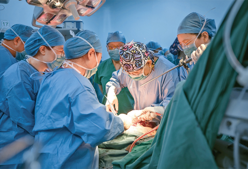 圖為2024年4月28日,北京協(xié)和醫(yī)院婦產(chǎn)科、麻醉科等為一位罕見的孕15周患者完成“盆腔巨大靜脈內(nèi)平滑肌瘤切除、累及心臟的下腔靜脈及雙側(cè)髂靜脈平滑肌瘤取出術(shù)”。術(shù)后,患者繼續(xù)妊娠,孕期平順。 國家衛(wèi)生健康委供圖