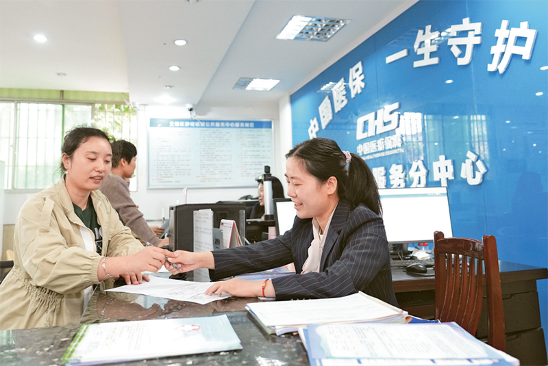 2023年10月初,重慶市北碚區(qū)醫(yī)療保障局聯(lián)合相關(guān)鎮(zhèn)街打造的5個(gè)醫(yī)保政務(wù)服務(wù)分中心正式啟用,主要經(jīng)辦醫(yī)保關(guān)系轉(zhuǎn)移接續(xù)、個(gè)人賬戶一次性支取、醫(yī)保補(bǔ)繳等19項(xiàng)醫(yī)保業(yè)務(wù),為周邊企業(yè)及群眾提供更加優(yōu)質(zhì)、高效、便捷的醫(yī)保公共服務(wù)。圖為10月9日,市民在北碚區(qū)靜觀鎮(zhèn)醫(yī)保政務(wù)服務(wù)分中心辦理醫(yī)保相關(guān)事宜。 人民圖片 秦廷富/攝