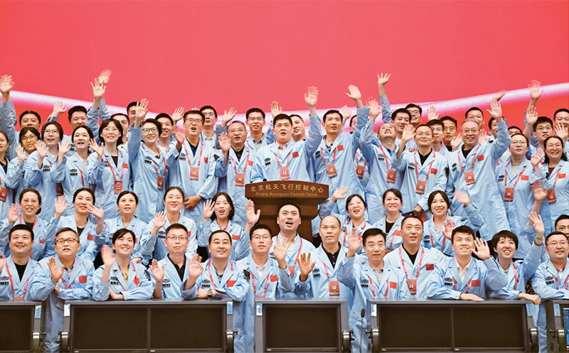 嫦娥六號(hào)完成了人類歷史上首次月球背面采樣,突破了多項(xiàng)關(guān)鍵技術(shù),是我國(guó)建設(shè)航天強(qiáng)國(guó)、科技強(qiáng)國(guó)取得的又一標(biāo)志性成果,是我國(guó)探月工程的重要里程碑。圖為2024年6月25日,嫦娥六號(hào)任務(wù)圓滿成功后,工作人員在北京航天飛行控制中心合影。 新華社記者 金良快/攝
