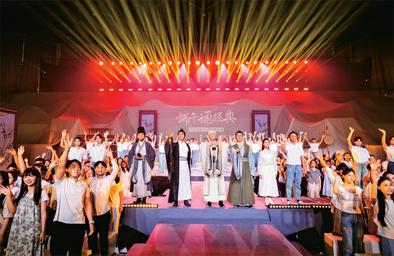 對(duì)祖國悠久歷史、深厚文化的理解和接受,是愛國主義情感培育和發(fā)展的重要條件。圖為2024年6月10日,在湖北大學(xué)舉辦的“青春中國節(jié)·荊風(fēng)楚韻”端午誦經(jīng)典活動(dòng)。 共青團(tuán)中央供圖