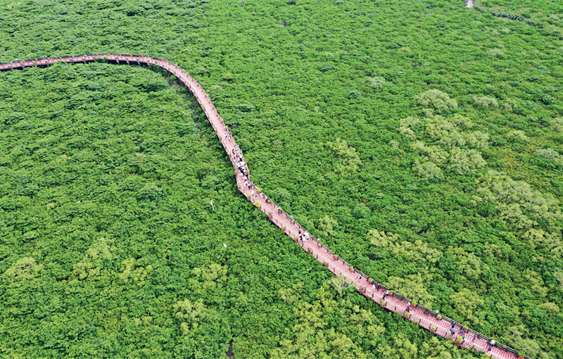 推動綠色發(fā)展,建設生態(tài)文明,重在建章立制。近年來,廣西北侖河口國家級自然保護區(qū)所在的廣西防城港市建立紅樹林精細“管、護、研”一體化工作機制,全面開展巡護管理、科研監(jiān)測、宣傳教育、社區(qū)共管、生態(tài)修復等各項工作,有效推動紅樹林生態(tài)系統(tǒng)質量全面提升。圖為2024年8月24日拍攝的廣西北侖河口國家級自然保護區(qū)的紅樹林。 新華社記者 陸波岸/攝