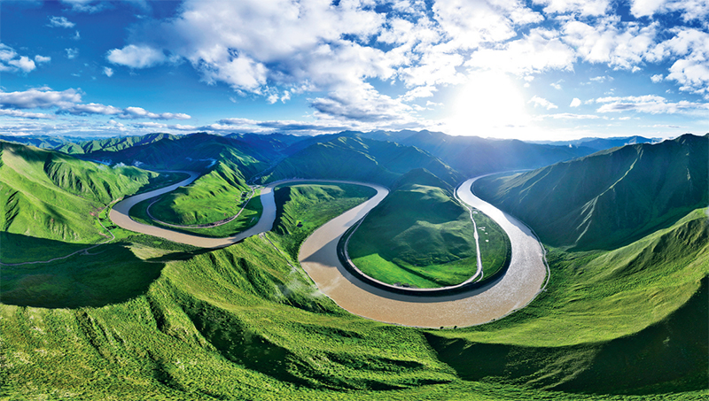 多年來(lái),甘肅積極承擔(dān)黃河上游保護(hù)責(zé)任,大力實(shí)施一批重大生態(tài)保護(hù)修復(fù)和建設(shè)工程。經(jīng)過(guò)持續(xù)不斷治理,昔日河沙侵蝕、沙進(jìn)草退的甘肅瑪曲縣,如今“沙龍”俯首,青綠重現(xiàn)。圖為2024年6月28日拍攝的黃河瑪曲縣木西合段。 甘肅日?qǐng)?bào)社供圖 呂亞龍/攝