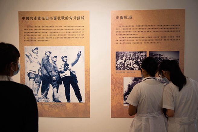 9月3日,“紀(jì)念中國(guó)人民抗日戰(zhàn)爭(zhēng)暨世界反法西斯戰(zhàn)爭(zhēng)勝利75周年展覽”在澳門(mén)塔石藝文館揭幕。展覽展出70多幅珍貴歷史圖片,輔以簡(jiǎn)明的歷史故事和圖片說(shuō)明,旨在普及抗戰(zhàn)歷史,加強(qiáng)愛(ài)國(guó)主義教育。圖為澳門(mén)學(xué)生觀看展覽。新華社記者 張金加/攝