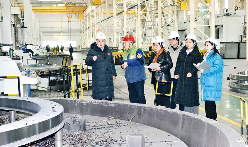 圖為2024年2月23日,山東省政協(xié)圍繞“推動(dòng)綠色低碳高質(zhì)量發(fā)展”主題,組織委員赴伊萊特能源裝備股份有限公司調(diào)研,與企業(yè)有關(guān)負(fù)責(zé)人和技術(shù)人員溝通交流,為履職建言打好基礎(chǔ)。?聯(lián)合日?qǐng)?bào)社記者 李昱/攝
