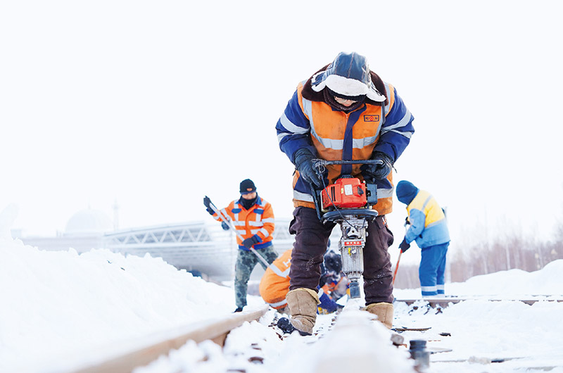 春運期間,交通部門積極采取保障措施,做好清雪除冰和旅客出行組織工作。圖為2024年1月23日,中國鐵路哈爾濱局集團(tuán)有限公司佳木斯工務(wù)段前進(jìn)鎮(zhèn)線路車間撫遠(yuǎn)工區(qū)班組成員在撫遠(yuǎn)站附近進(jìn)行冬季線路凍害檢修作業(yè)。 新華社記者 王松/攝
