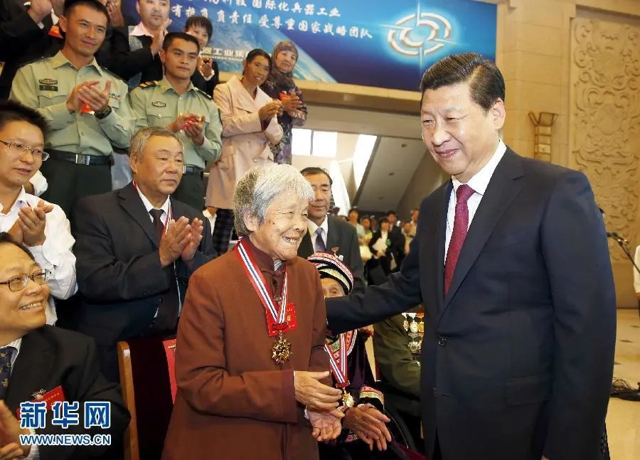 總書記飽含深情地說,我剛才看到這位老前輩,她就是我們的老將軍甘祖昌的夫人龔全珍,她今年90多歲了,我看到她以后心里一陣陣的感動(dòng)。
